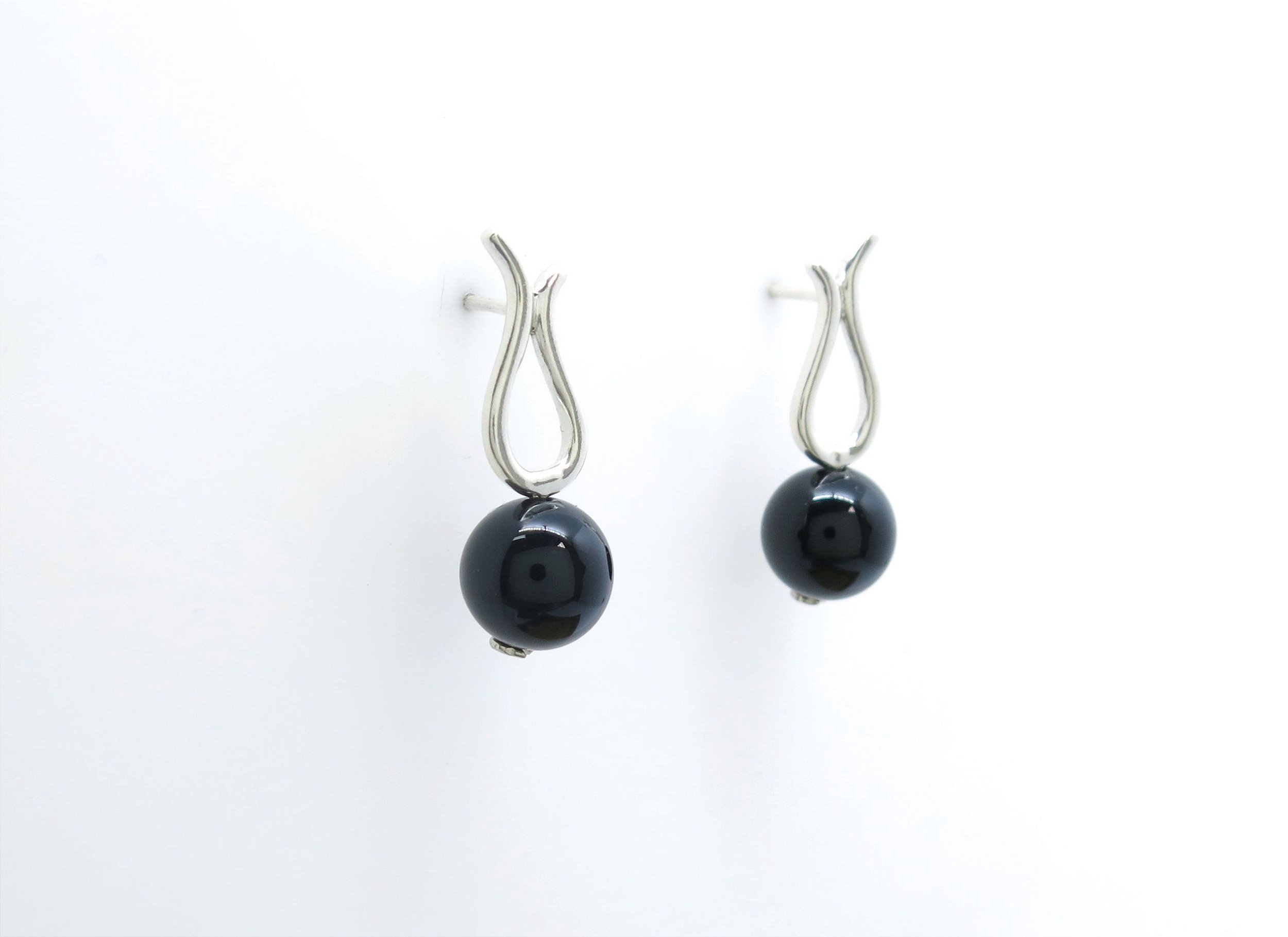 Brinco Lira ágata negra em prata 950. Design com a possibilidade de usar em duas posições, cada uma com um efeito diferente.
