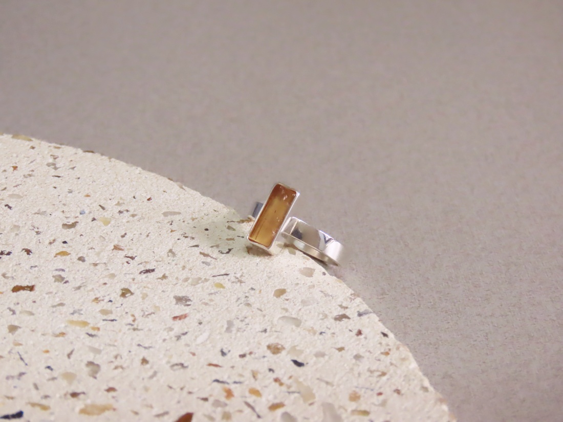 Anel em prata 950 com Topázio Imperial III em formato retangular.