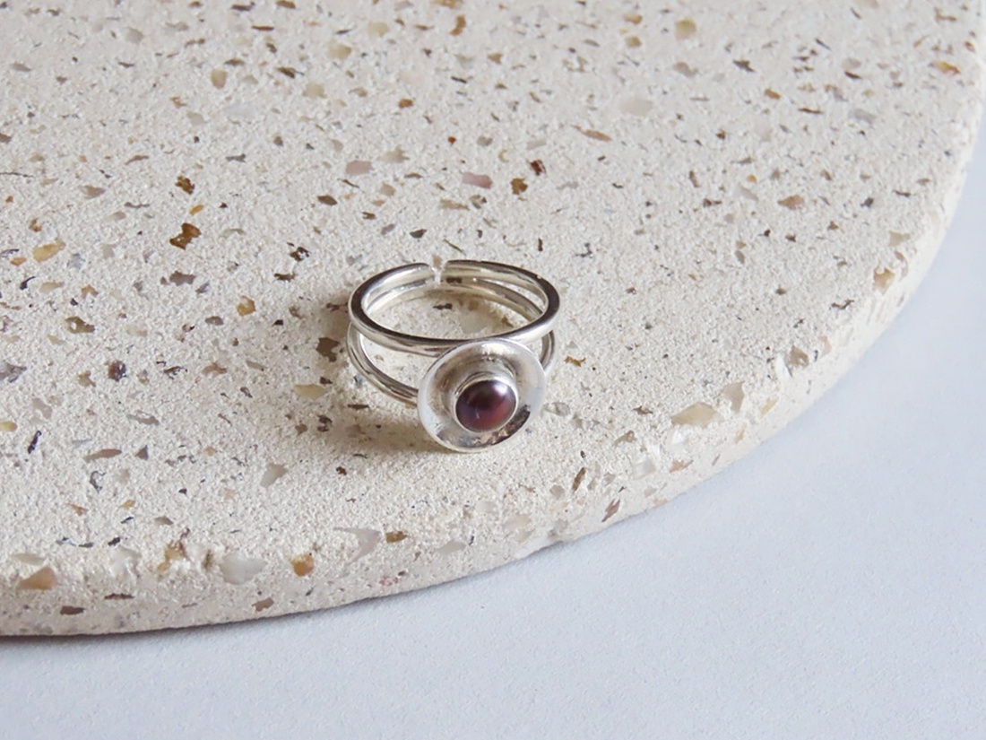 Anel Concha com Pérola Biwa em prata 950.