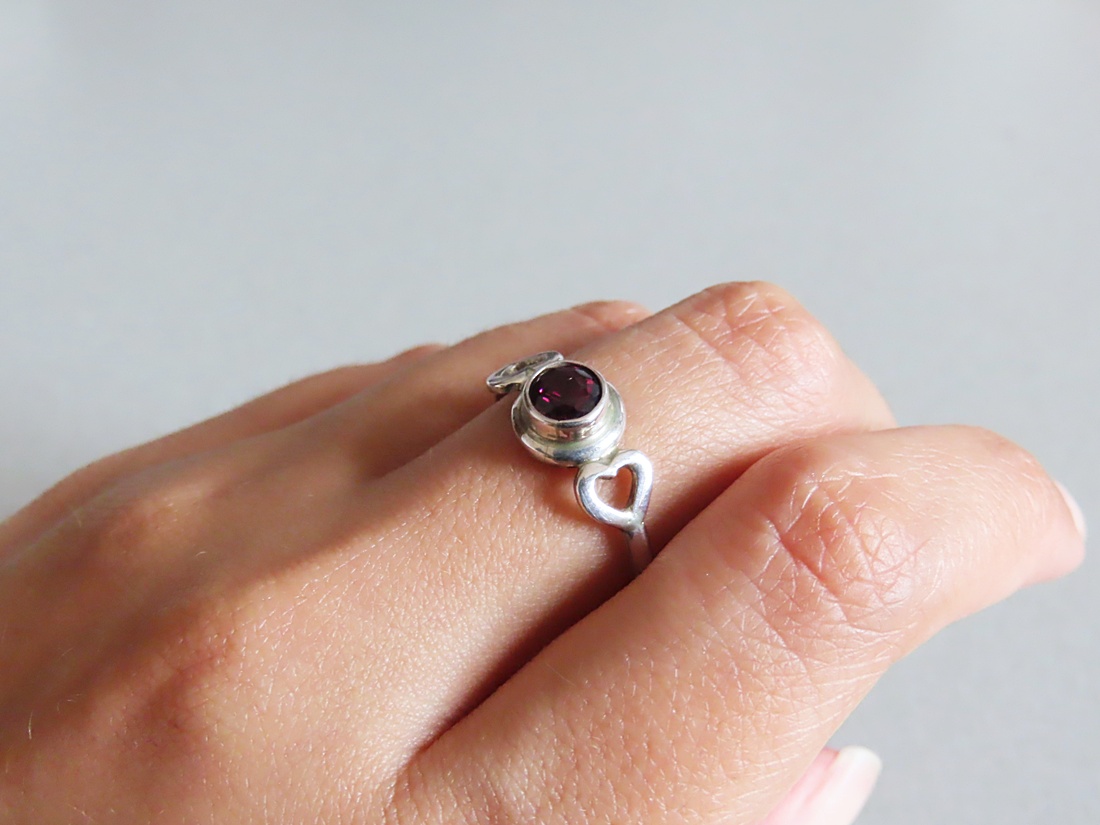 Anel Delicado Coração com Granada Facetada em prata 950.
