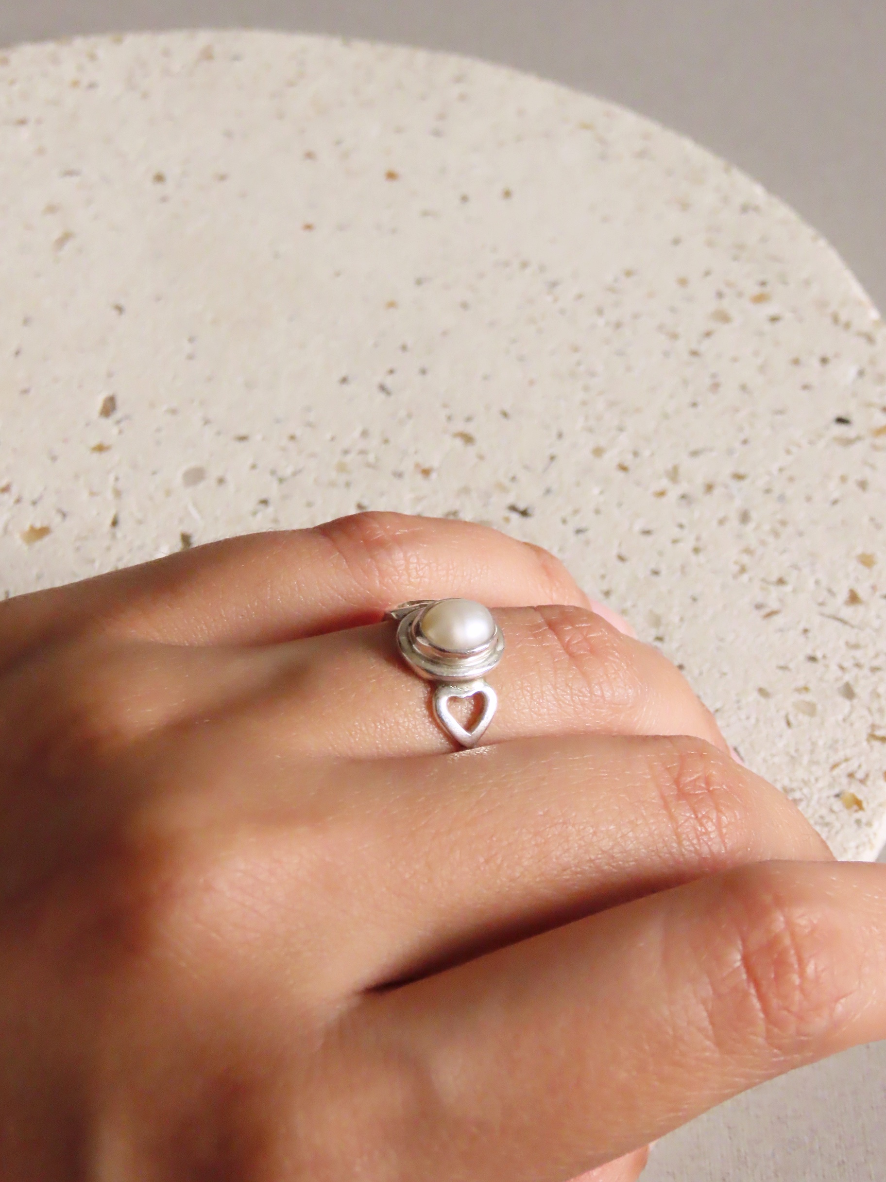 Anel Delicado Coração com Pérola Biwa em prata 950.