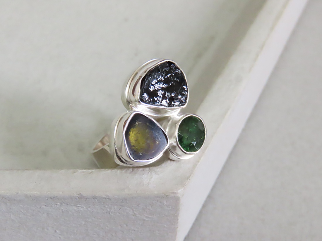 Anel trio com Turmalinas e prata 950, com design morderno e estiloso.
