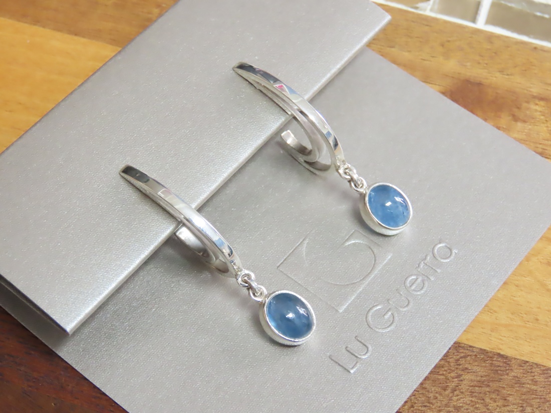 Brinco Arco Iris Caixa com Água Marinha Pequeno em Prata 950.