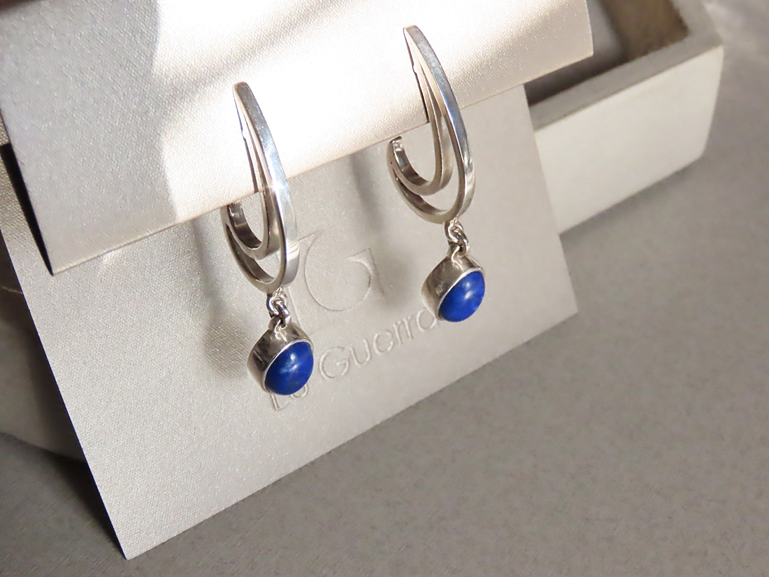 Brinco Arco Iris Caixa com Lápis Lazúli em Prata 950.