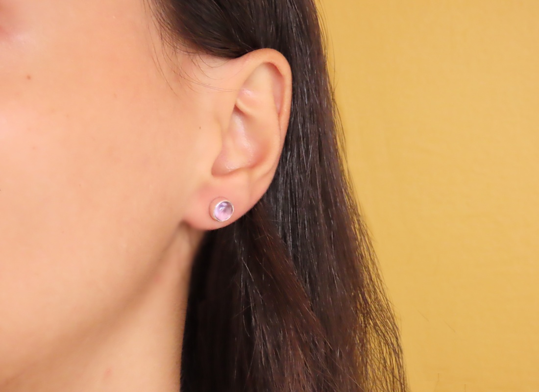 Brinco Caixa Ametista. Brinco articulado, de pino em Prata 950.