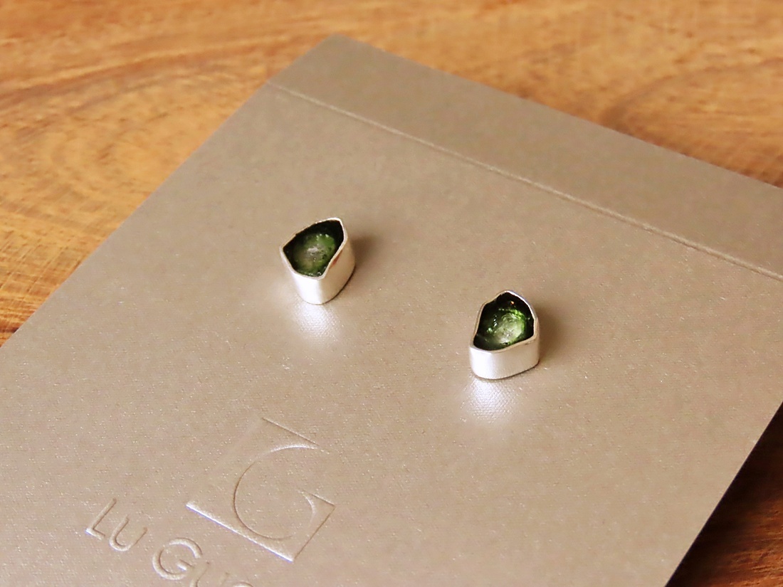 Brinco Caixa com Turmalina Melancia I. Confeccionado artesanalmente em prata 950.