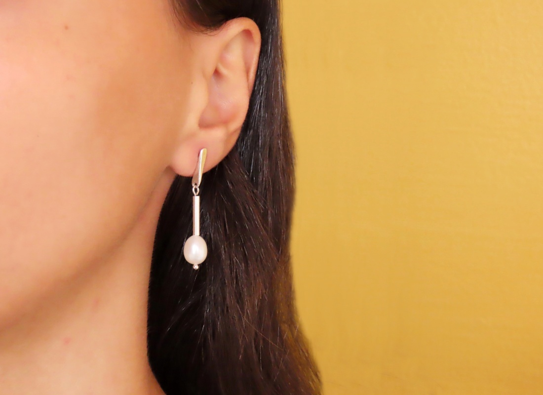 Brinco Exclamação Pêndulo com Pérola Biwa em prata 950.