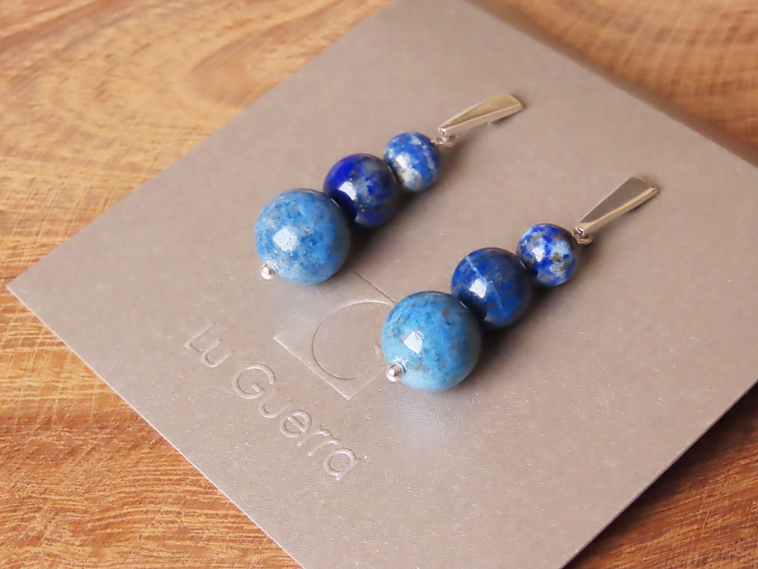 Brinco Trilogia Exclamação Lápis Lazuli. Em prata 950 brinco com movimento.