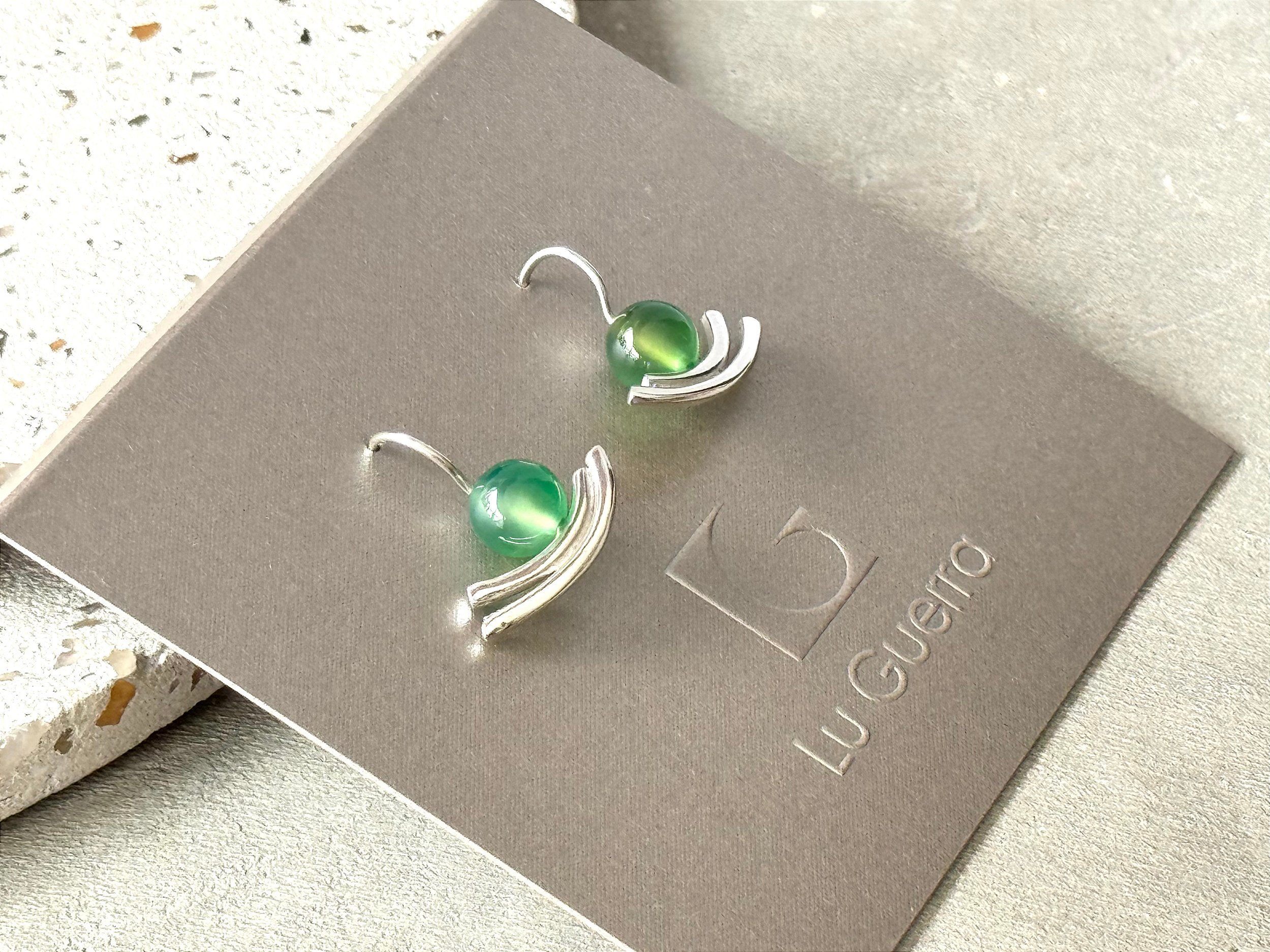 Brinco Gaivota com Quartzo Verde em prata 950.