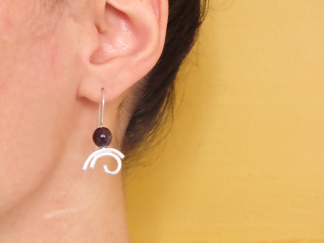 Brinco Grafismo Gancho com Granada. Confeccionada em prata 950.