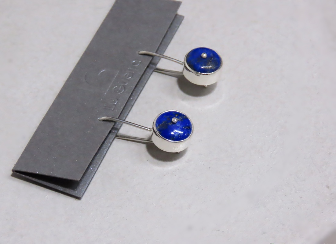 Brinco em Gancho Caixa com Lápis Lazuli, confeccionado artesanalmente em prata 950.