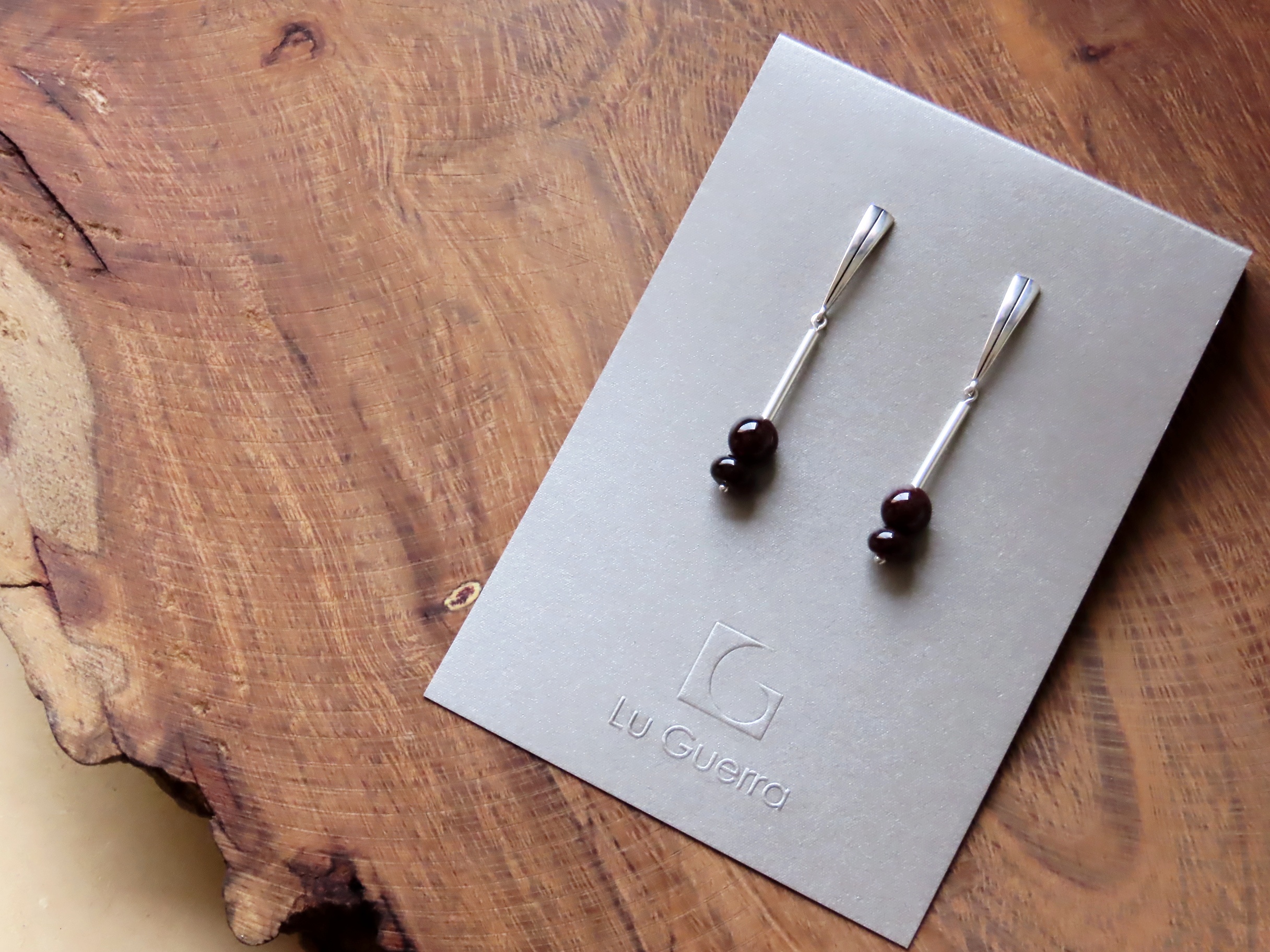 Brinco Iara Longo em prata 950 com Granada, pino.
