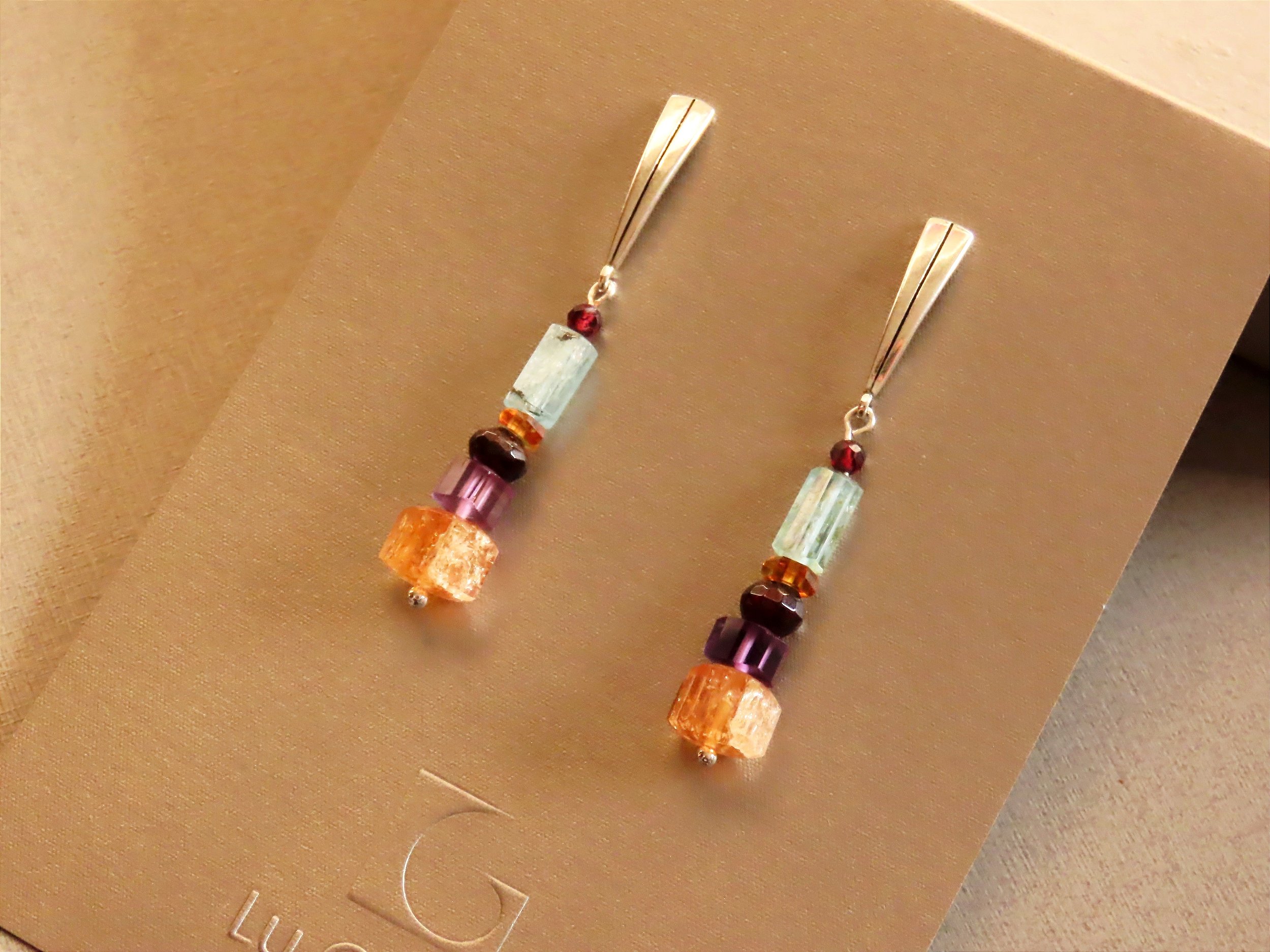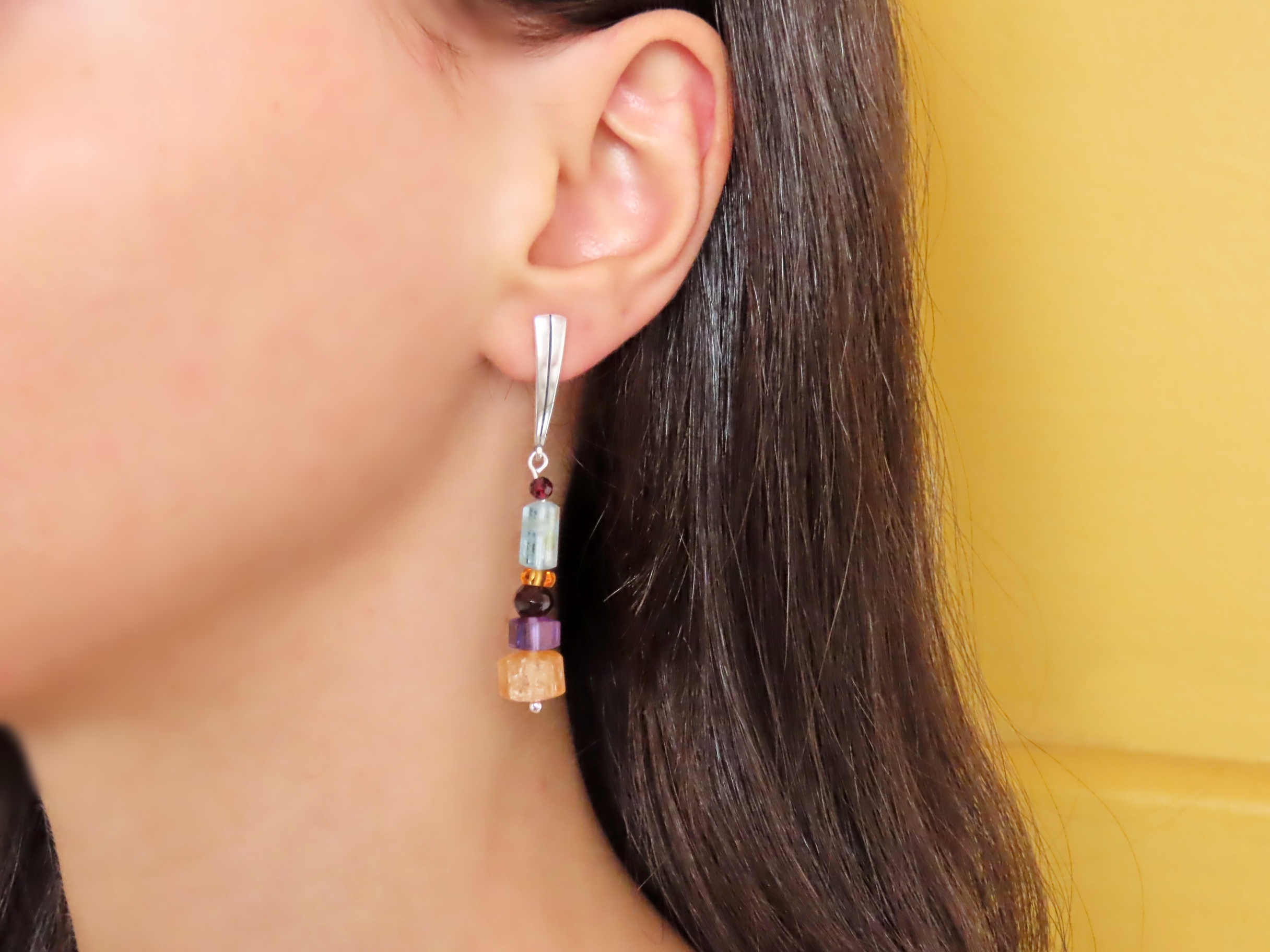 Brinco Iara Longo em prata 950 com Topázio Imperial, Ametista, Água Marinha, Citrino e Granada.