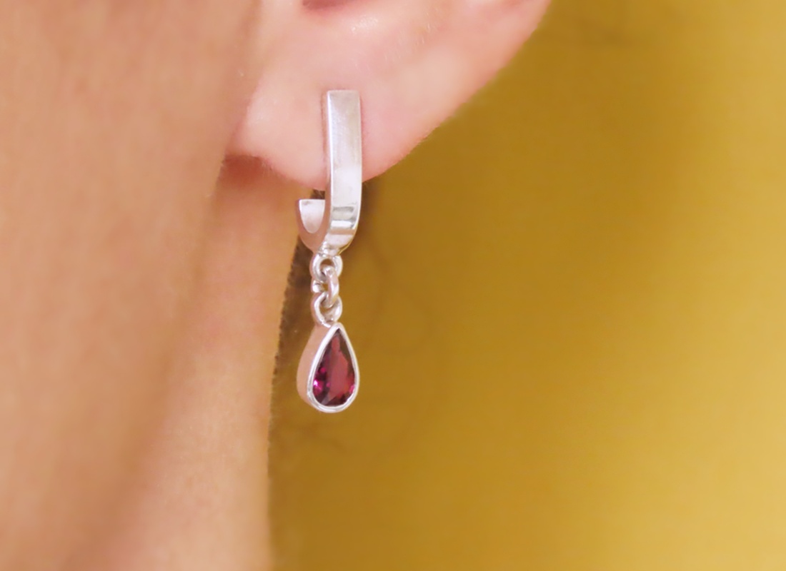 Brinco Mini Gôndola Caixa em prata 950 com Granada I. Brinco articulado, de pino.