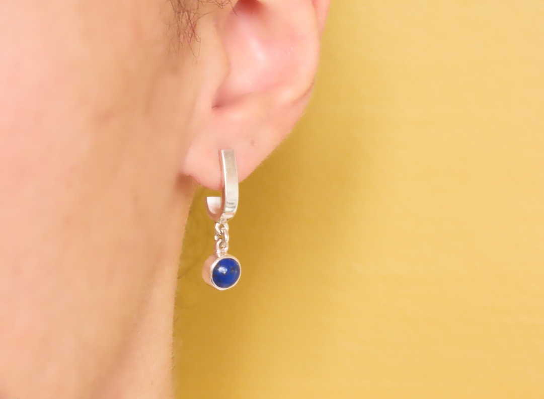 Brinco Mini Gôndola Caixa em prata 950 com Lápis Lazuli. Brinco articulado, de pino.