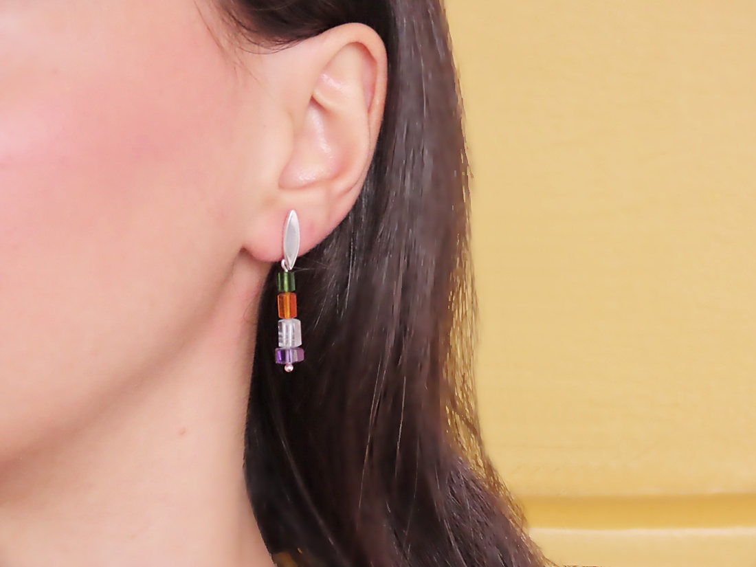Brinco Navete com Turmalinas, Ametista, Água Marinha e Citrino. Em prata 950 brinco com movimento.