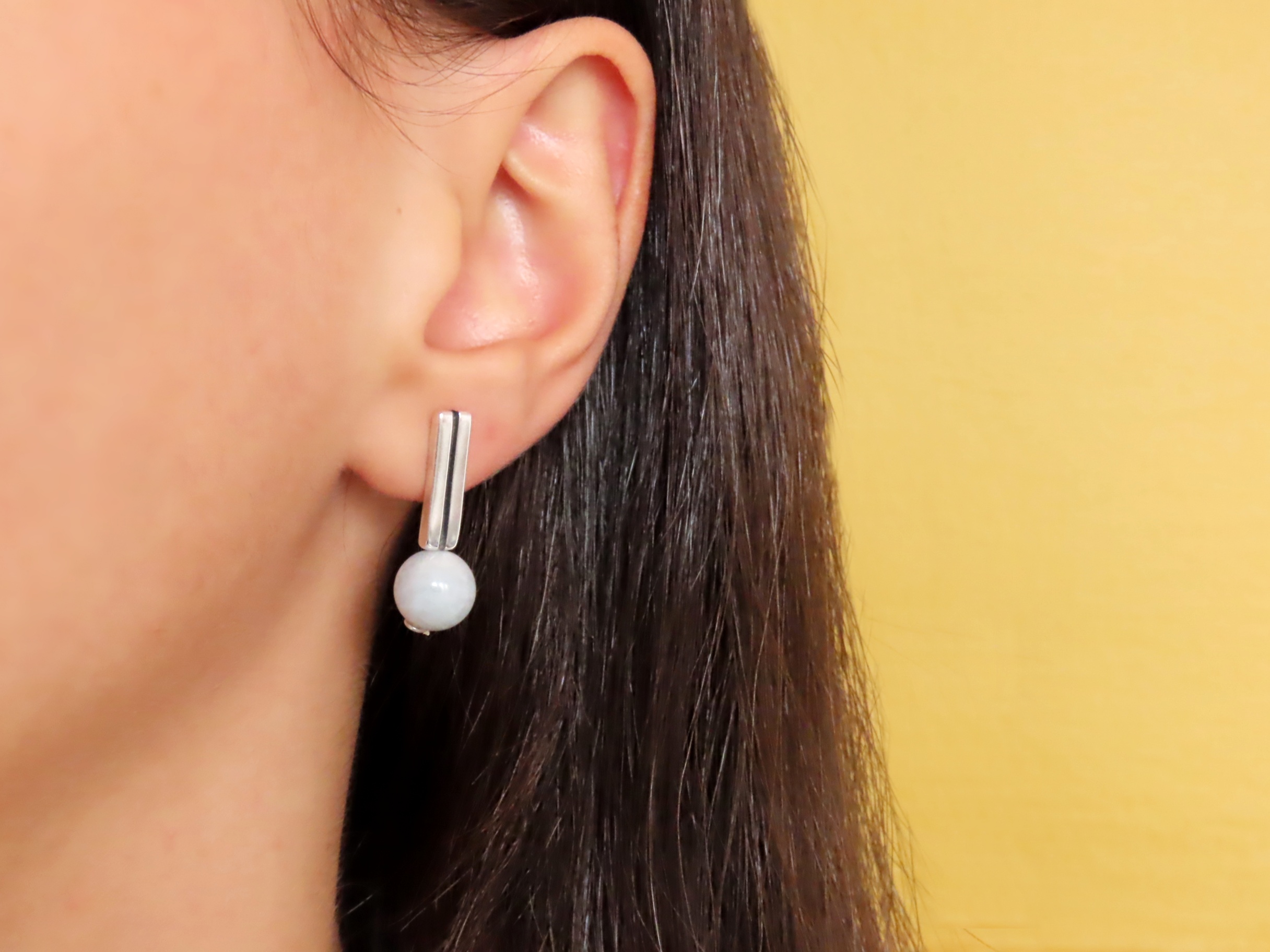 Brinco Slim Duplo em prata 950 com esfera lisa de Água Marinha. Brinco com pedra fixa, de pino.
