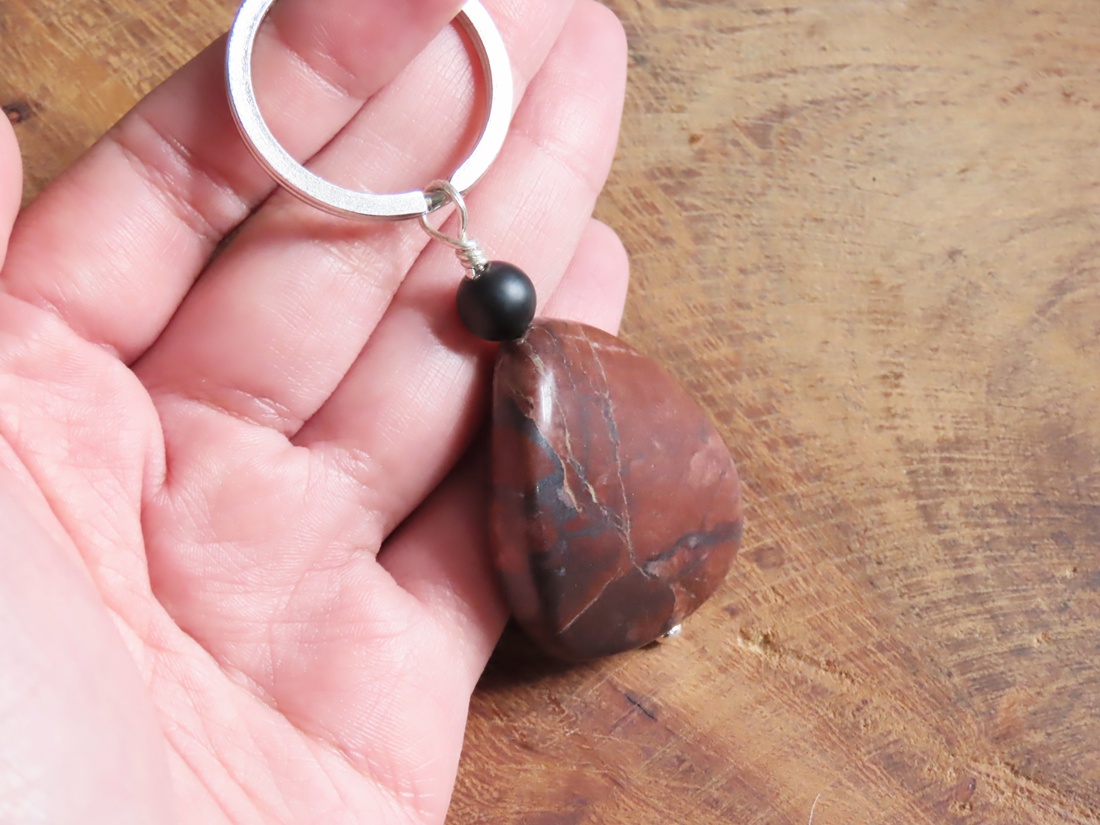 Chaveiro jaspe com acabamento em prata 950, elo em aço.