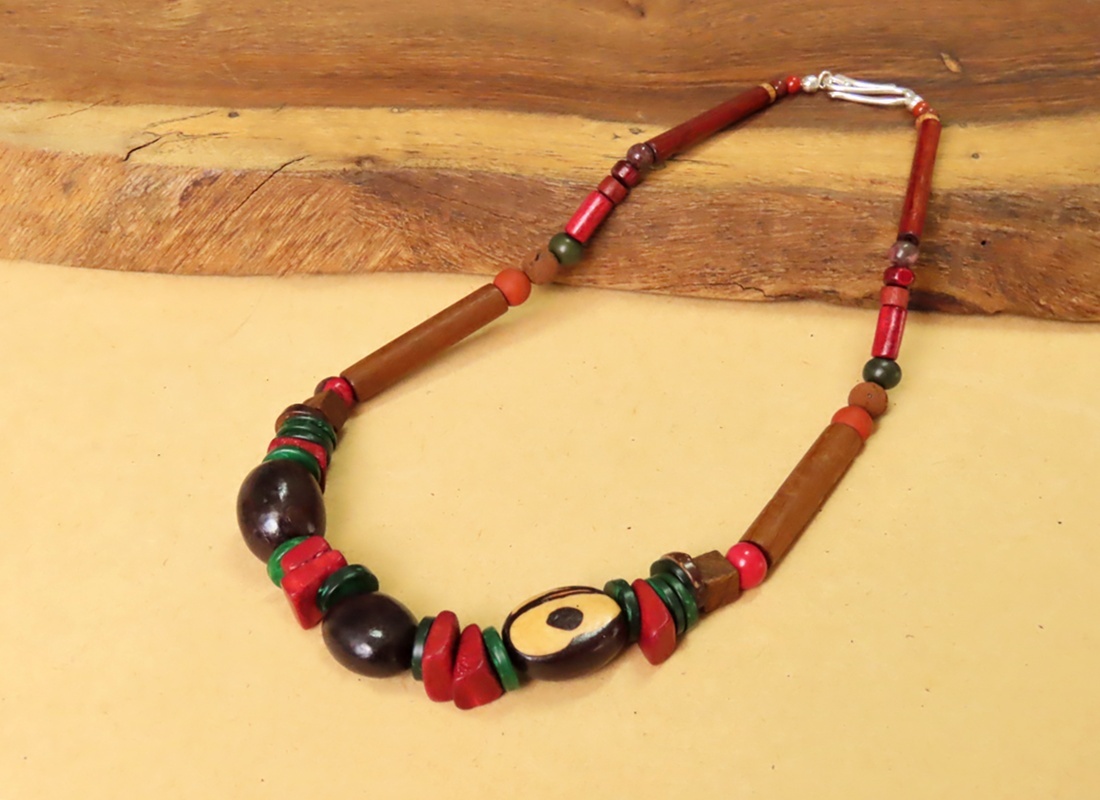 Colar Étnico Jatobá, Açai, Jaspe, Coco e Madeiras diversas. Fecho Exclusivo em prata 950.