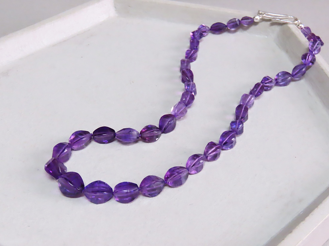 Colar delicado com Ametista Facetada. Peça única e versátil que combina com tudo. Fecho exclusivo em Prata 950.