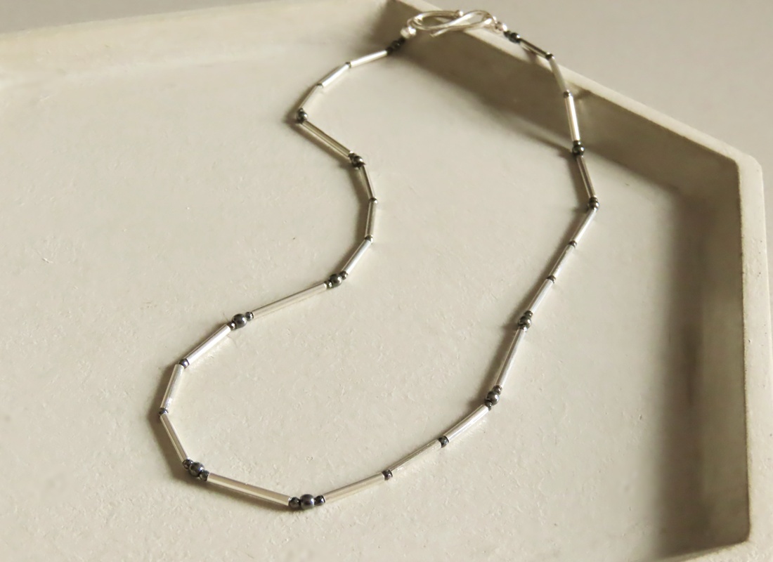 Colar Canutilhos com Hematita Lisa e Facetada II. Fecho exclusivo em prata 950.