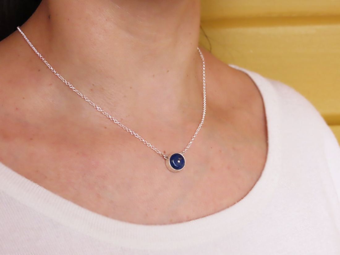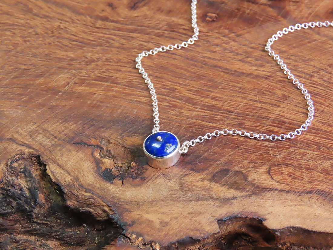 Colar corrente em caixa com Lápis Lazuli. Corrente trama Portuguesa, em prata 950.