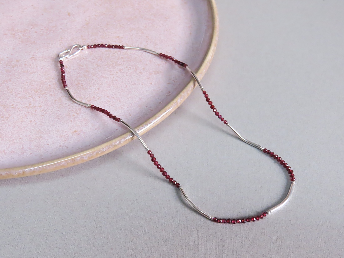Colar Canyon Delicado com Granada. Fecho exclusivo em prata 950.