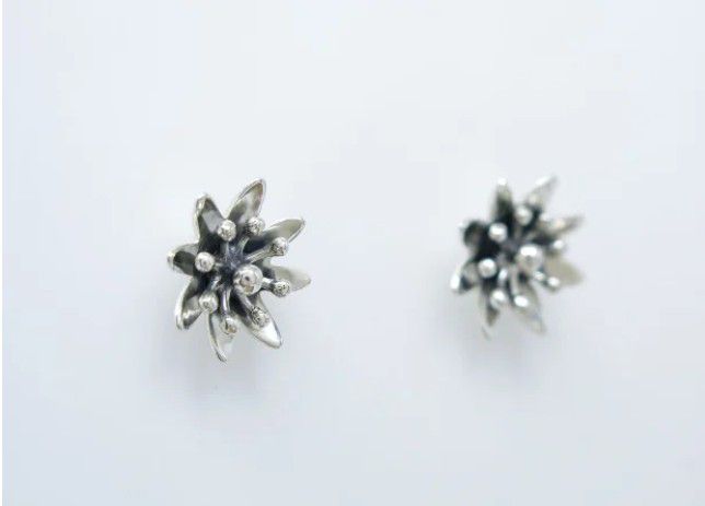Brinco Flor de Edelweiss gancho em prata 950.A Edelweiss (Leontopodium alpinum) é uma flor originária dos Alpes e pode ser conservada por muitas décadas com a mesma aparência de quando foi colhida, simbolizando o amor eterno.