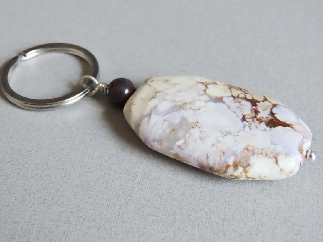 Chaveiro Jaspe, com acabamento em prata 950, elo em aço.
