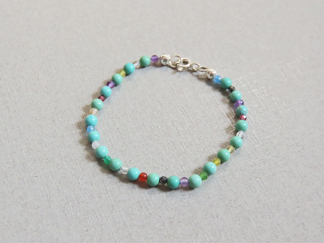 Pulseira Baby delicada com howlita, granada, ametista, ágata e quartzo com fecho em prata 950.