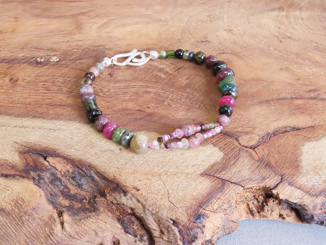 Pulseira Exótica com Turmalina. Fecho em prata 950.