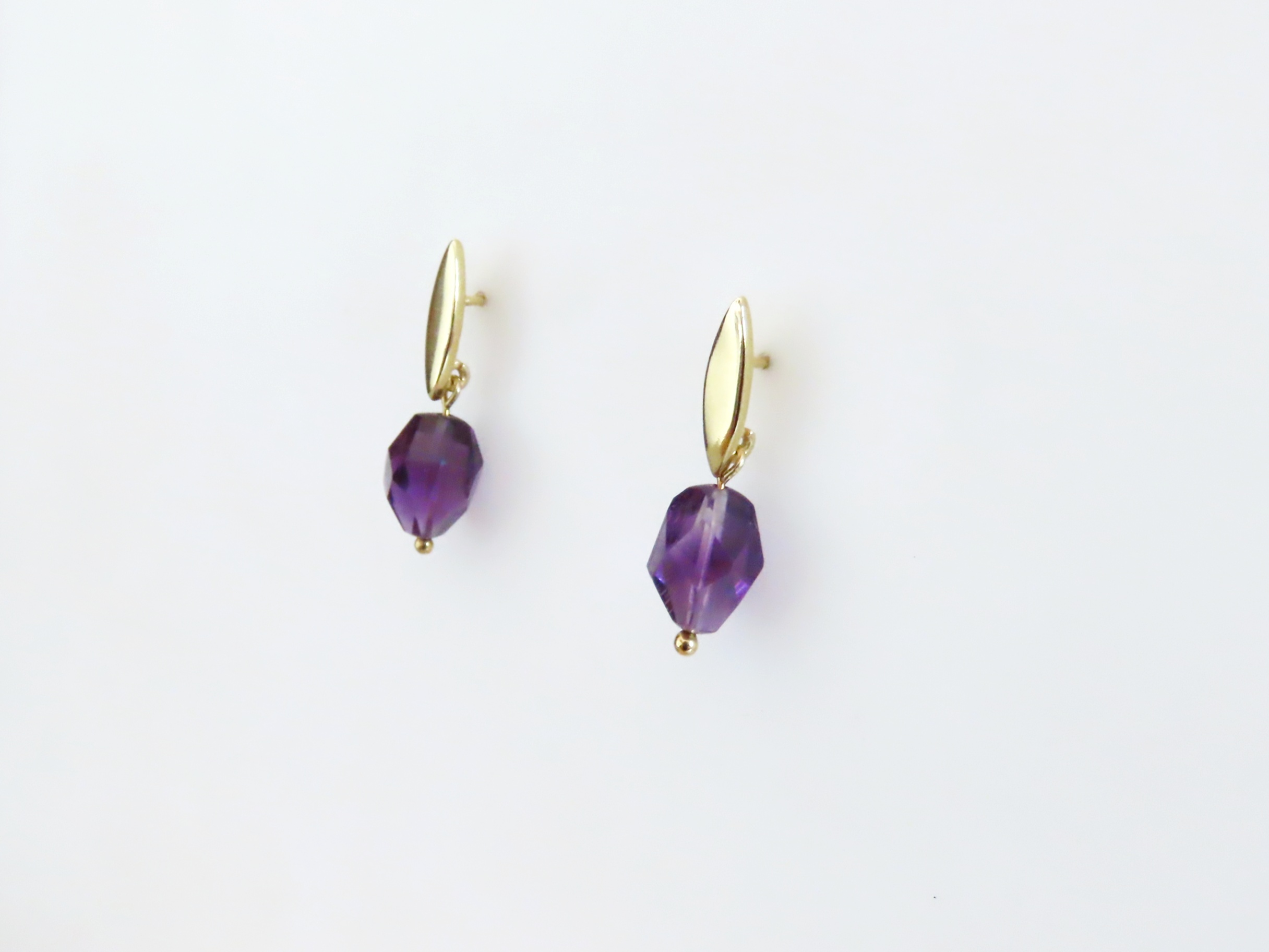 Brinco Navete com Ametista Facetada em Vermeil - Folha de Ouro 18k sobre a prata.