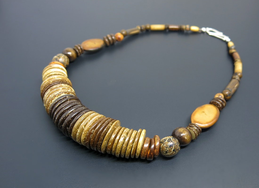 Colar Étnico de coco, bambu, murici, jarina e guapuruvu Fecho exclusivo em prata 950
